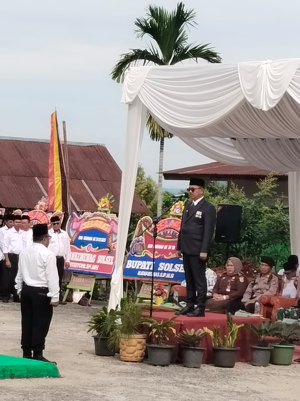 Upacara yang dilaksanakan di halaman kantor Kemenag Solok Selatan tersebut di hadiri oleh kakankemenag Solok Selatan Fitriyoni, para kasi, staf pegawai kan Kemenag, DWP Kemenag, seluruh ASN yang terdiri dari PNS, PPPK, honorer, IGRA, guru PAI se Solok Selatan dan siswa MI, MTs dan MA kecamatan Sangir.