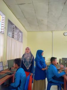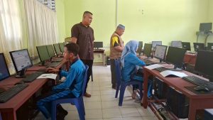 Pekan Selasa, Humas — Kepala MTsN 3 Solok Selatan H. Jasrul dan kaur TU Akriyanti menyaksikan 8 orang siswa berjibaku dengan soal-soal di labor komputer MTsN 3 Solok Selatan untuk menguji kemampuan mereka dalam mata pelajaran IPA terintegrasi, Matematika terintegrasi dan IPS terintegrasi, Sabtu 12/7/2025.