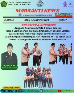 MTsN 3 Solok Selatan mendulang piala pada kegiatan memperingati hari kemerdekaan Republik Indonesia yang ke – 79 dan Hari Pramuka ke – 63 Kwarcab 0319 Kabupaten Solok Selatan.