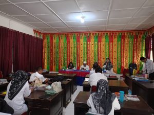 Pekan Selasa, Humas – Kepala MTsN 3 Solok Selatan H. Jasrul di dampingi kaur TU Akriyanti memimpin rapat dinas bulanan di ruangan kantor majelis guru, Senin 21/10/2024.
