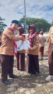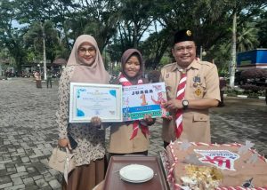 Piagam dan hadiah tersebut di serahkan langsung oleh kabag kesra kabupaten Solok Selatan H. Mahadolok Ritonga di dampingi kakan kemenag Solok Selatan Fitriyoni setelah upacara peringatan HUT Pramuka ke – 64 di Padang Aro.