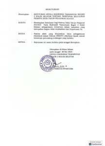 Dan kesepakatan tersebut dikuatkan dengan Surat Keputusan Kepala MTsN 3 Solok Selatan sebagaimana terlampir :