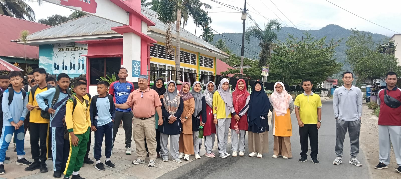 Pekan Selasa, Humas — Kepala MTsN 3 Solok Selatan H. Jasrul melepas peserta hiking dalam rangka penutupan MATSAMA siswa baru MTsN 3 Solok Selatan di gerbang madrasah, Kamis 17/7/2025.