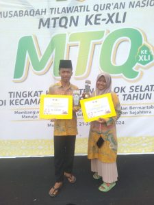 Adif Saputra mendapatkan juara 1 tilawah anak-anak putra dan Nurzahra Alya Nabila juara 1 tilawah anak-anak putri, Selci Aura Lestari mendapatkan juara 3 tartil dasar serta Siti Azzahra meraih harapan 3 cabang Fahmi Qur’an.