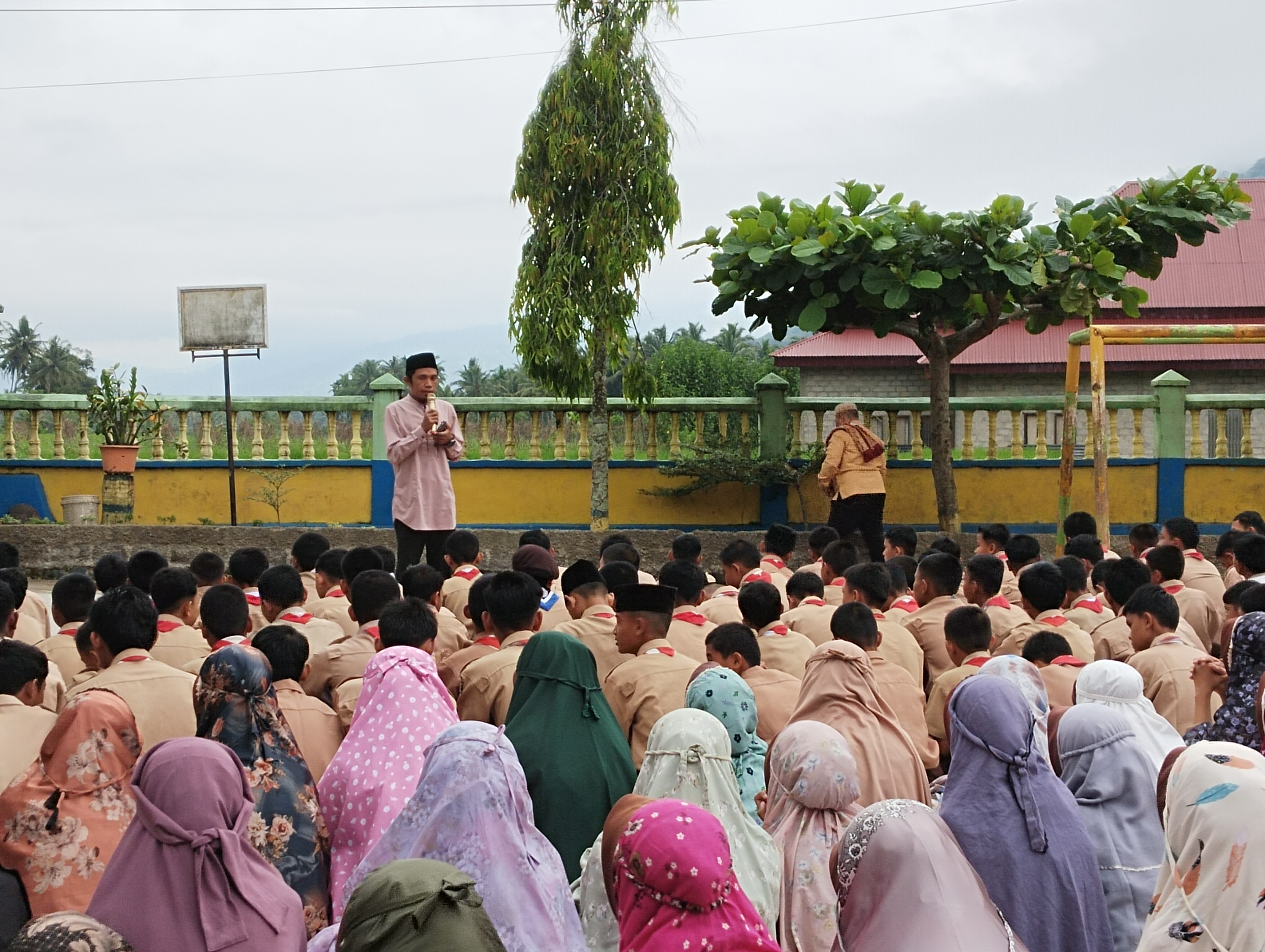 Pekan Selasa, Humas – Abdul Muhi penyuluh KUA Pauh Duo memberikan taushiyah kepada siswa MTsN 3 Solok Selatan di halaman madrasah, Kamis 26/9/2024.