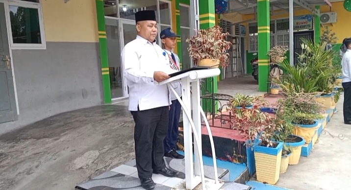 Kepala MTsN 3 Solok Selatan H. Jasrul sebagai pembina upacara, dalam amanatnya membacakan pidato Badan Pembinaan Ideologi Pancasila di hadapan seluruh guru dan pegawai serta siswa kelas 7 dan 8 MTsN 3 Solok Selatan.